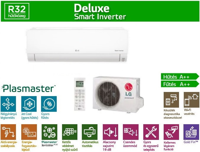 A LG DC09RK Deluxe Wifi Smart Inverter Split klíma fontos tulajdonságai: