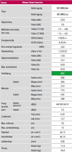 A LG DC18RH Deluxe Wifi Smart Inverter Split klíma fontos tulajdonságai: