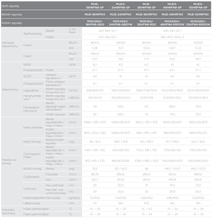 - Hűtő teljesítmény : 10,55 kW