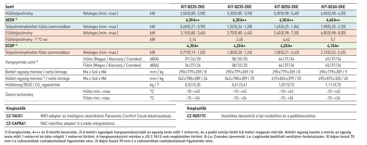 A Panasonic KIT-BZ50-ZKE Standard Inverteres Split klíma fontos tulajdonságai: