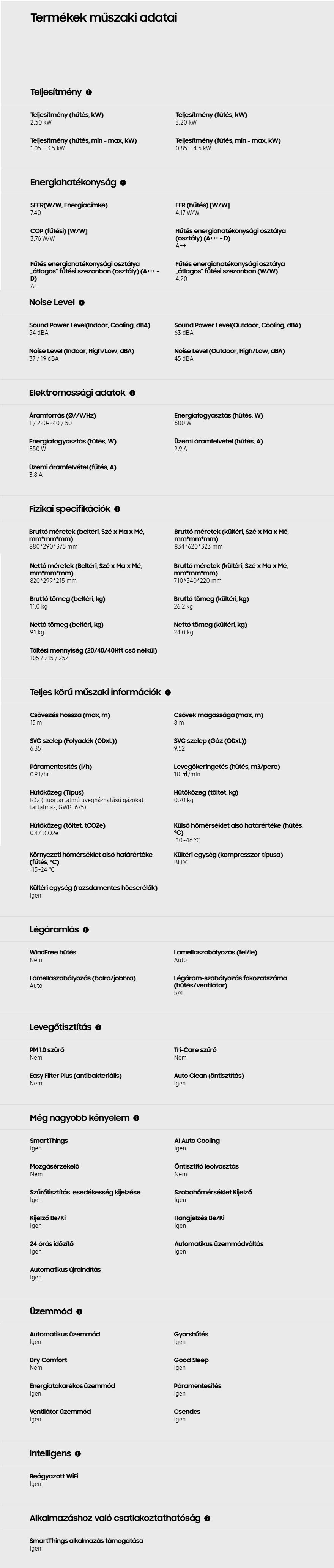 A Samsung AR50F09C1AHNEU Cebu S2 Inverteres Split klíma fontos tulajdonságai: